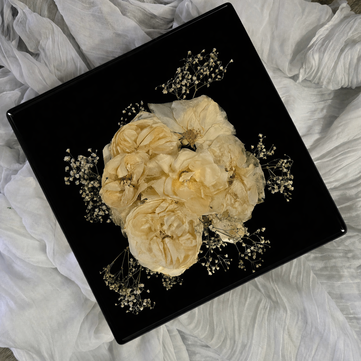 Here at Chase That Bouquet, we collaborate closely with each client to preserve their most meaningful flowers. We carefully select and prepare each bloom—whether from a wedding, funeral, or other milestone—capturing its beauty at its freshest. Every piece is then thoughtfully arranged and preserved in custom resin designs, turning your cherished flowers into art that lasts a lifetime.